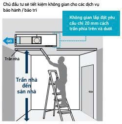 Yêu cầu chiều cao từ trần bê tông xuống trần thạch cao chỉ 240mm là đã lắp đặt và bảo trì bảo dưỡng thuận lợi